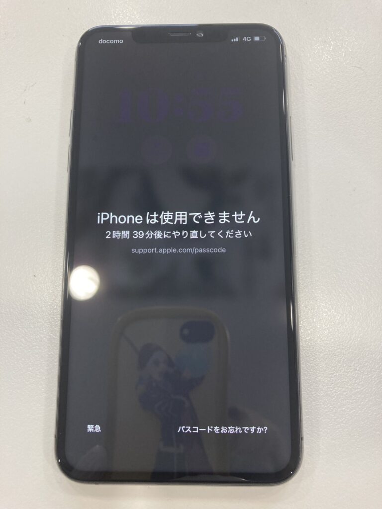 これも怖い状態です。画面修理を完了しているので、時間が経過するのを待ち、パスコードを正確に入力していただければ解除することができます。