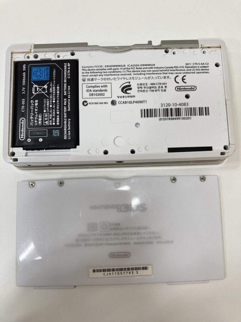 ※3DSの仕様上、バッテリーを取り外すとすれ違い通信に関するデータが無くなります。すれ違いをした人や人数、すれ違い伝説、その他ソフトのすれ違い通信に関する情報などがなくなってしまいますので、予めご了承の上修理をご依頼くださいませ。
