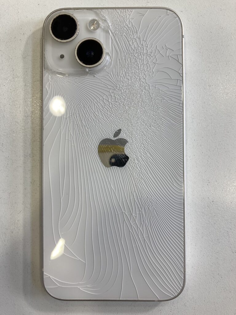 【放置厳禁‼】バックガラス割れは、水没の原因にもなります。iPhone 14 バックガラス修理