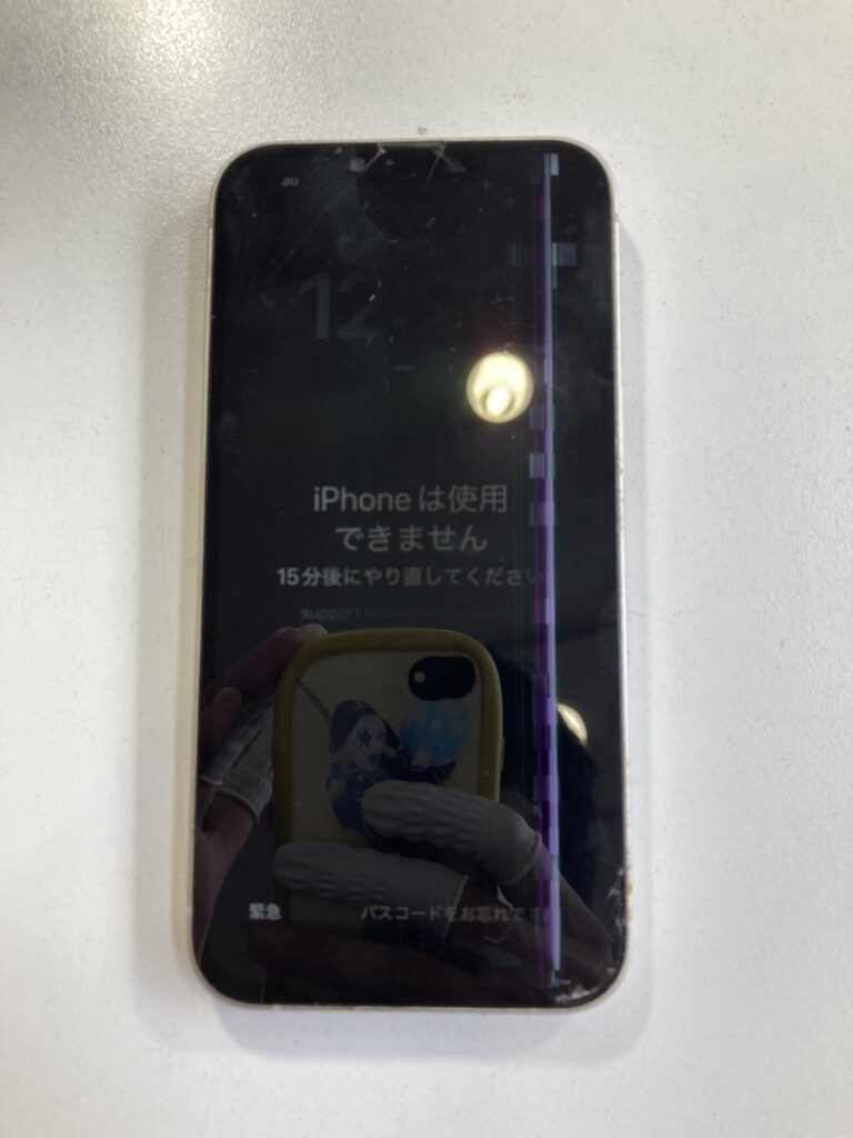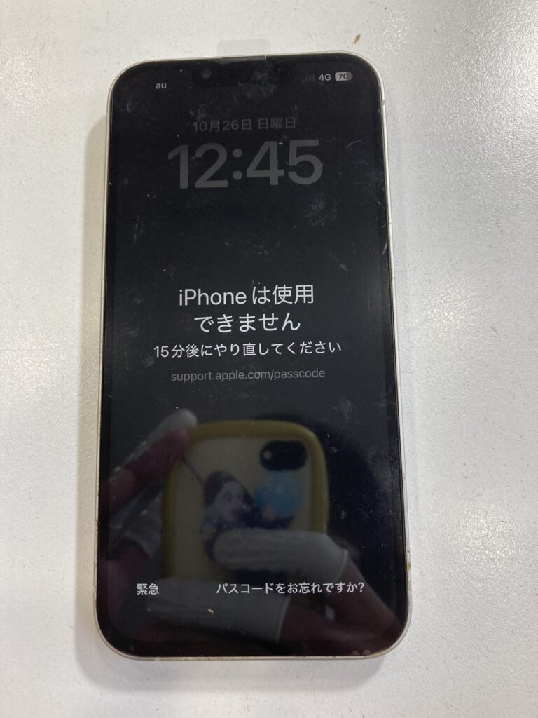 iPhoneをロックする際にプライバシーを守るためにパスワードをかけている方がほとんどだと思います。通常の場合だと、パスワードを何度も間違えることはあまりないと思います。ですが、液晶割れや画面の不具合で誤作動がおきて、勝手にパスワードが入力されて複数回間違うと、この”iPhoneを使用できません”という表示が出るようになります。