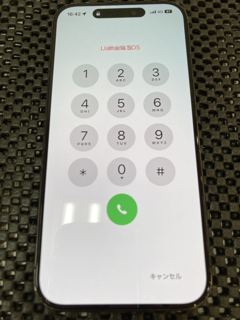 上の写真は、電源を落としているiPhone15Proです。画面の半分が真っ白になっており、何が表示されているのかもわかりません。なぜ電源を落としているのかと申しますと、画面のほとんどの映像が映らないのに、タッチ操作ができるからです。誤作動を起こして、勝手にアプリを開いたり、電話をかけたりする原因にもなりかねませんので、電源を落とせるうちに落として修理を開始していきます。