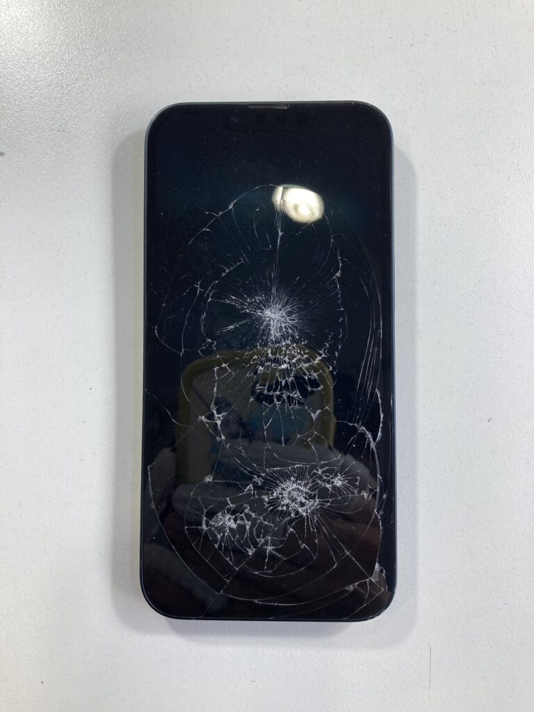 バイク走行中に落としてしまって画面がバキバキになってしまった・・・【iPhone 13】