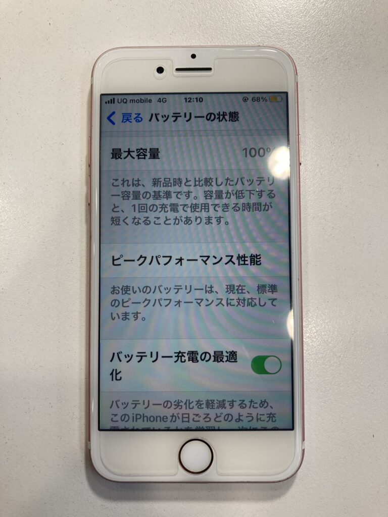 iPhoneには、普段の使用状況やバッテリーの消耗具合を学習して自動で充電する量を調整する機能があります。その機能の影響でせっかく交換をして新しいバッテリーが入っているのに、交換前後でバッテリーの減り方が変わらないという事が起きる可能性があります。